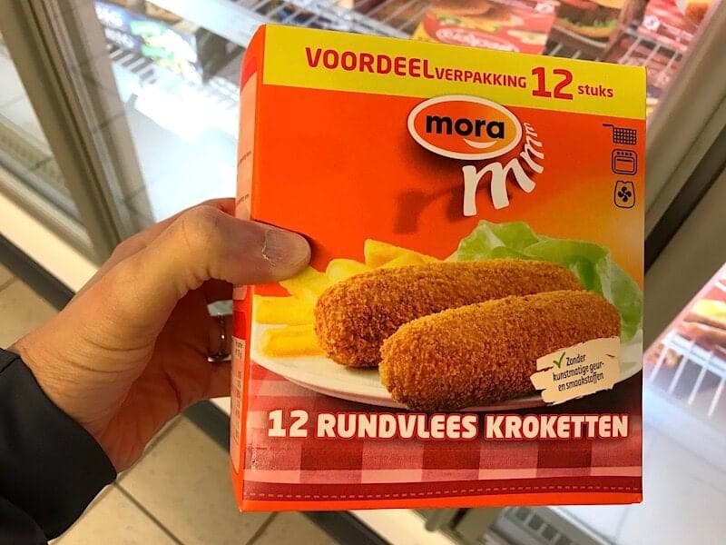 Im niederländischen Supermarkt findet man Kroketten im Tiefkühlregal. Manche Sorten lassen sich im Ofen zubereiten. Praktisch, wenn man keine Fritteuse hat oder diese nicht nur für ein paar kroketten anschmeißen möchte.